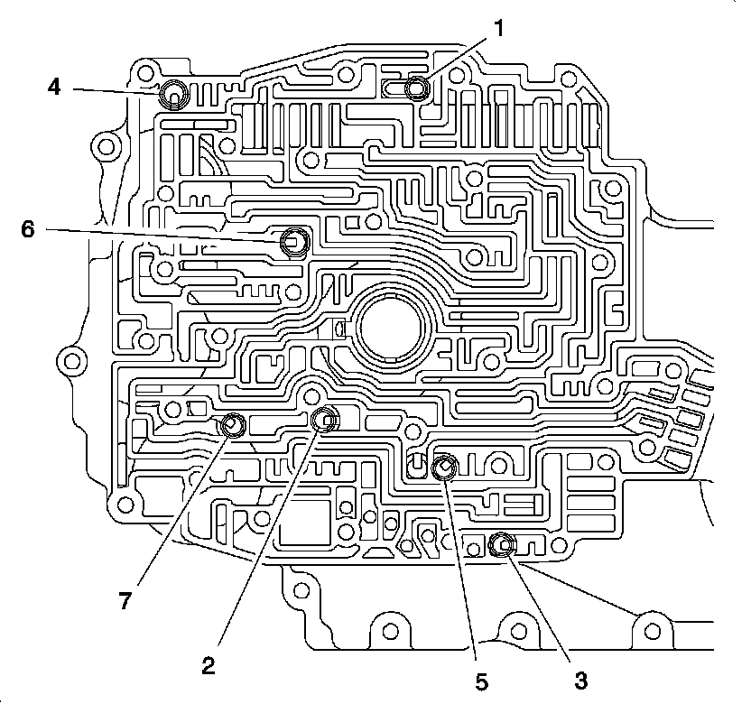 5. Remove the TFP switch assembly bolts and remove the switch assembly from the control valve body. The 7 TFP switch O-rings are reusable if not damaged and should remain with the pressure switch assembly.