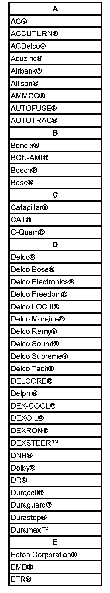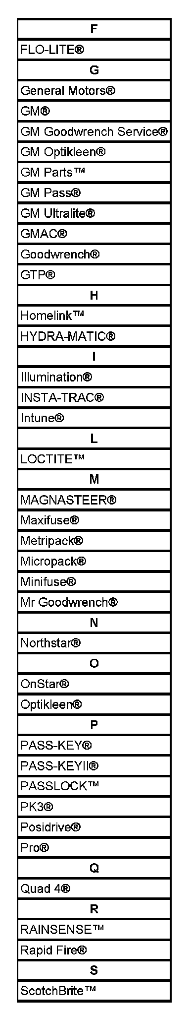 Listed are Registered Trademarks ((R)) or Non-Registered Trademarks ((TM)) which may appear in this service data.