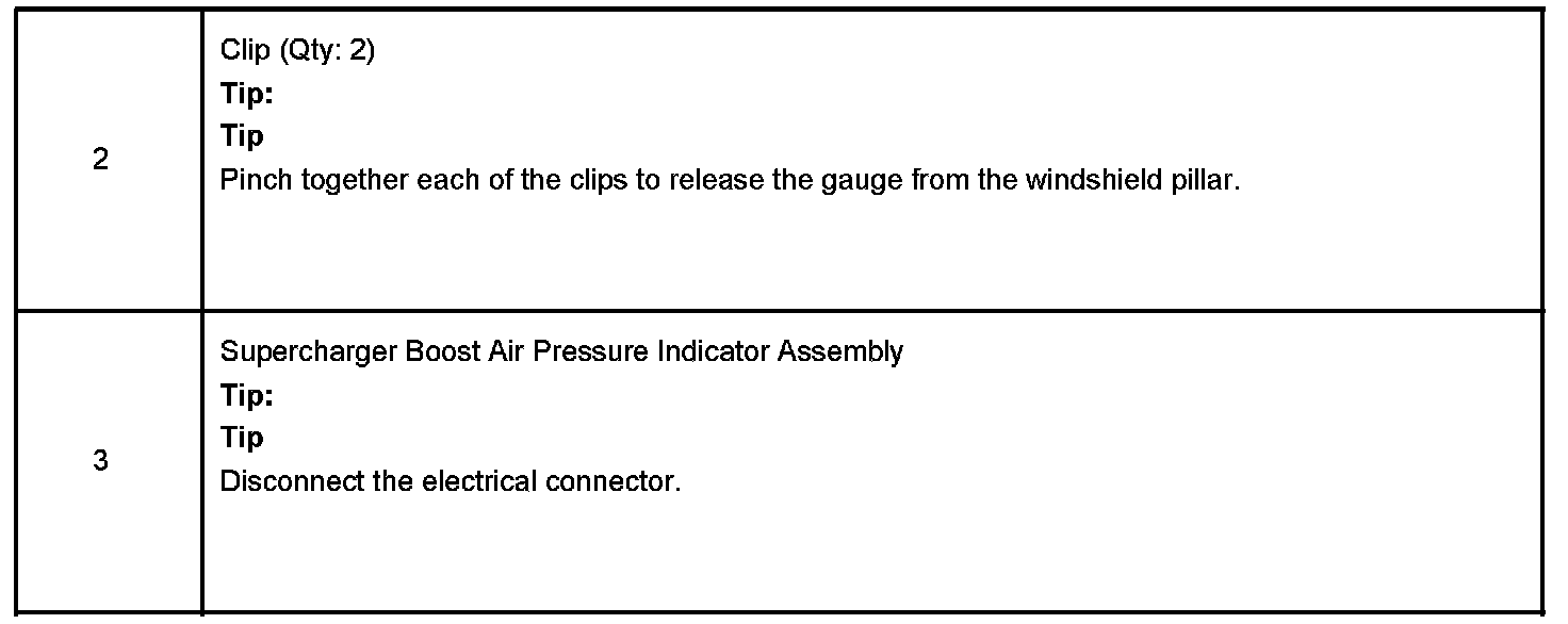 This bulletin is being issued to add the Supercharger Boost Air Pressure Indicator Replacement procedure in the Instrument Panel, Gages, and Console sub-section of the Service Manual. Please replace the current information in the Service Manual with the following information.