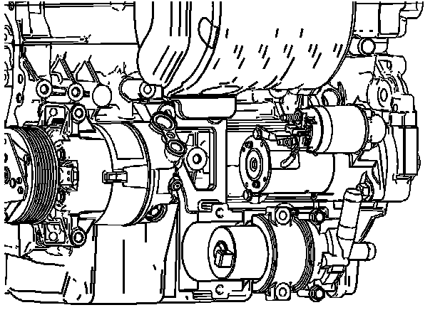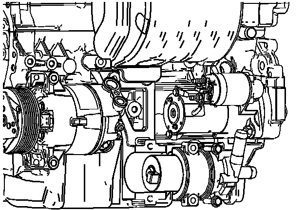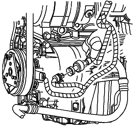 7. Remove the compressor and condenser hose assembly bolt from the compressor.