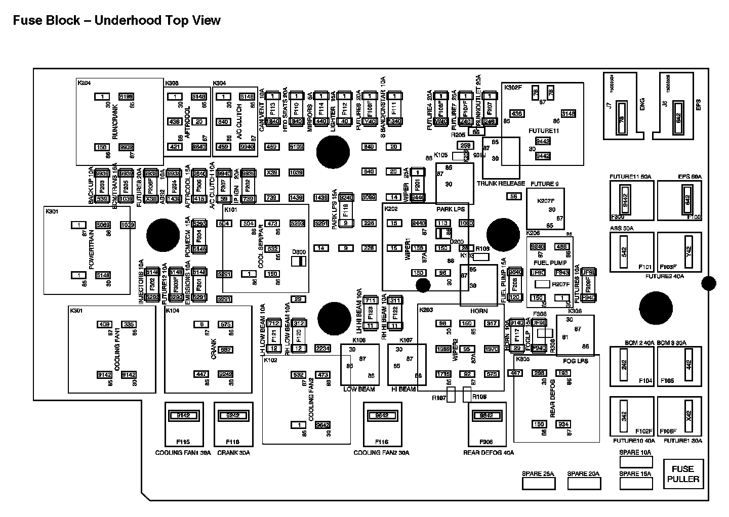 Fuse Block - Underhood Top View