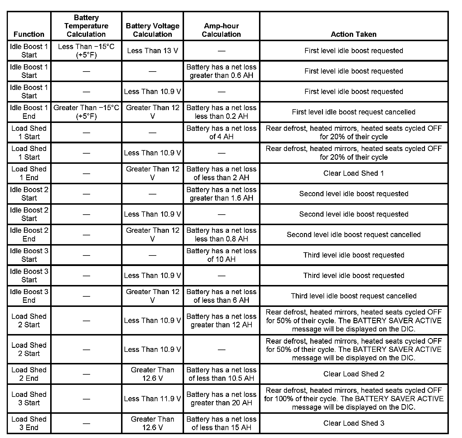 Each EPM function, either idle boost or load-shed, is discrete. No 2 functions are active at the same time. Idle boost is activated in incremental steps, idle boost 1 must be active before idle boost 2 can be active. The criteria used by the body control module (BCM) to regulate EPM are outlined.