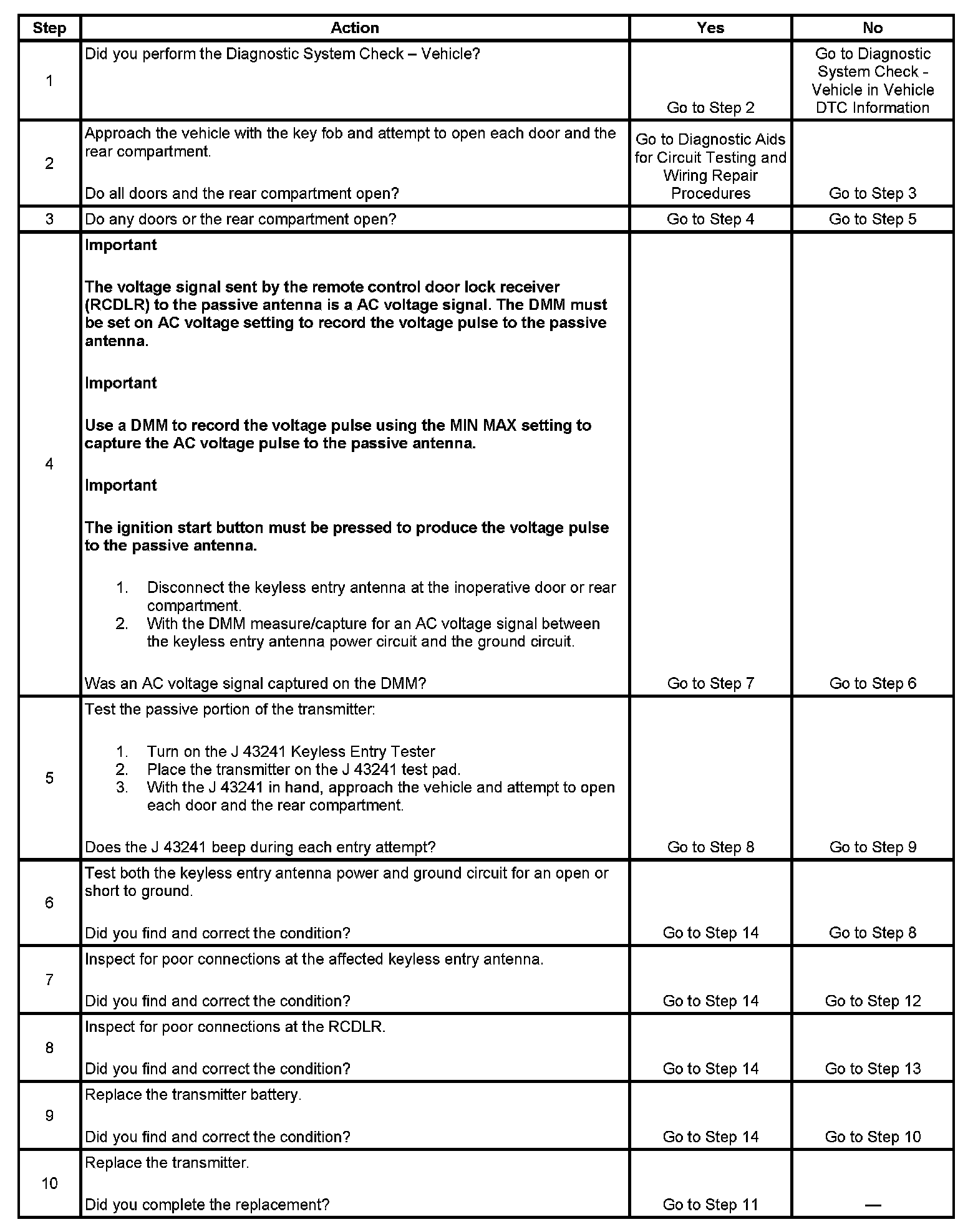 Keyless Entry System Inoperative (Passive)
