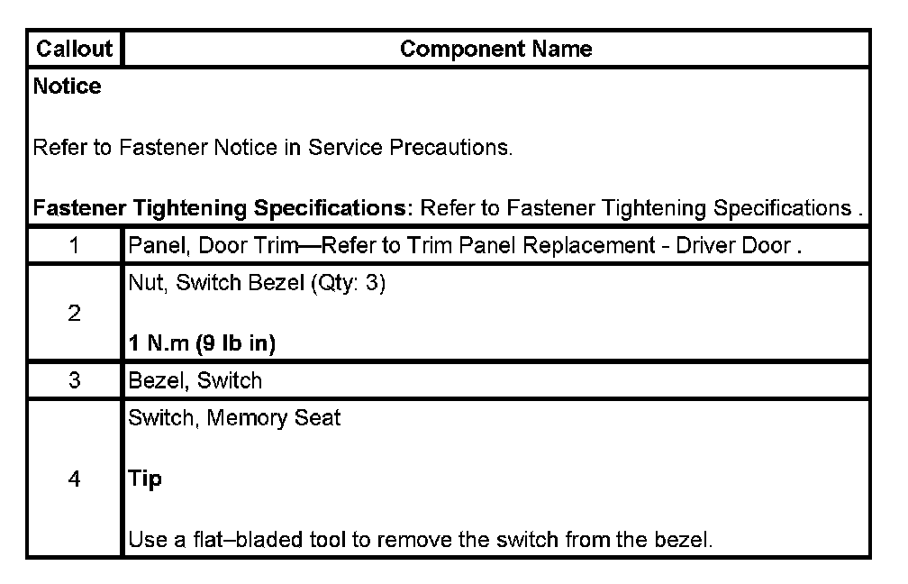 MEMORY SEAT SWITCH REPLACEMENT