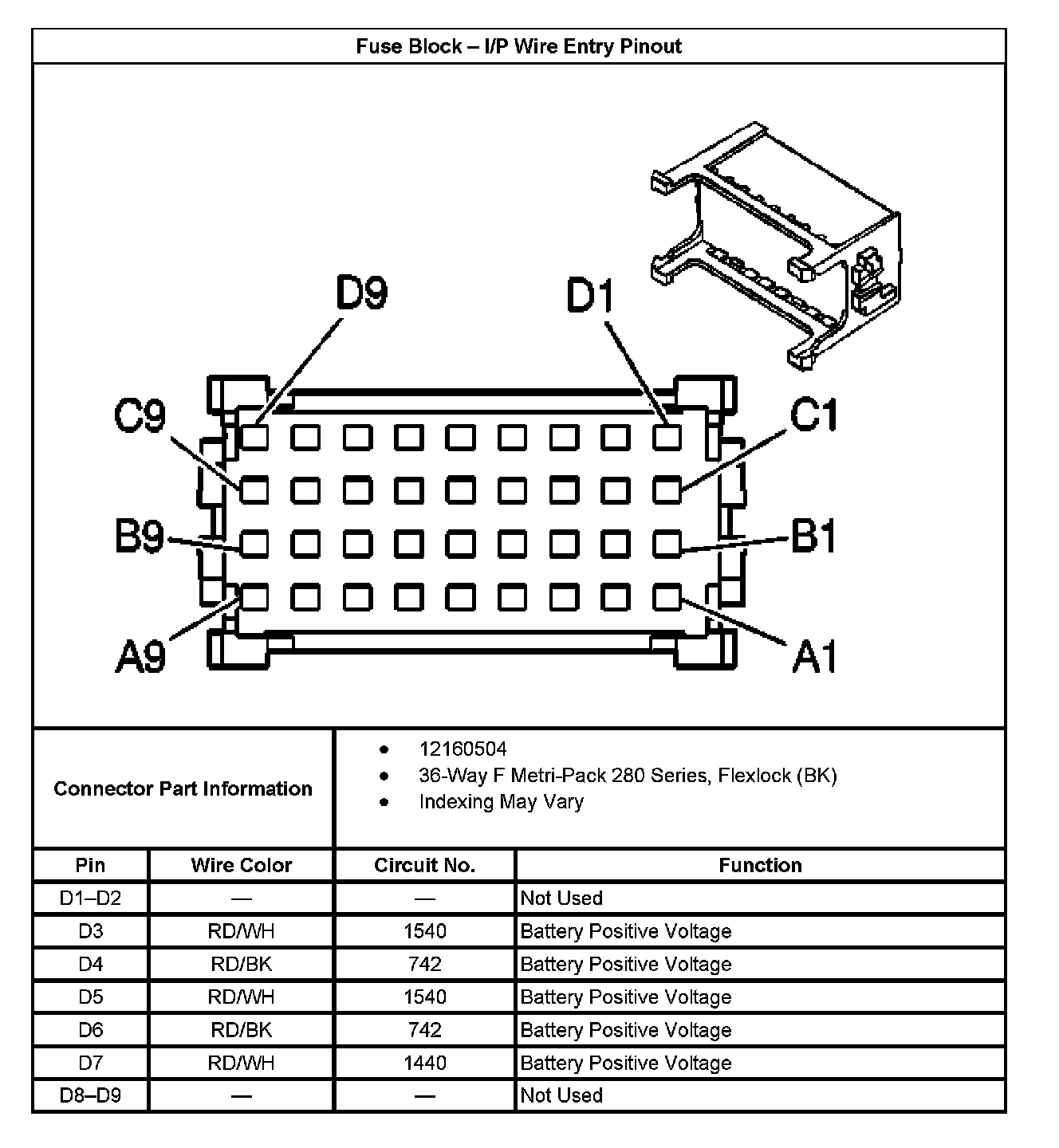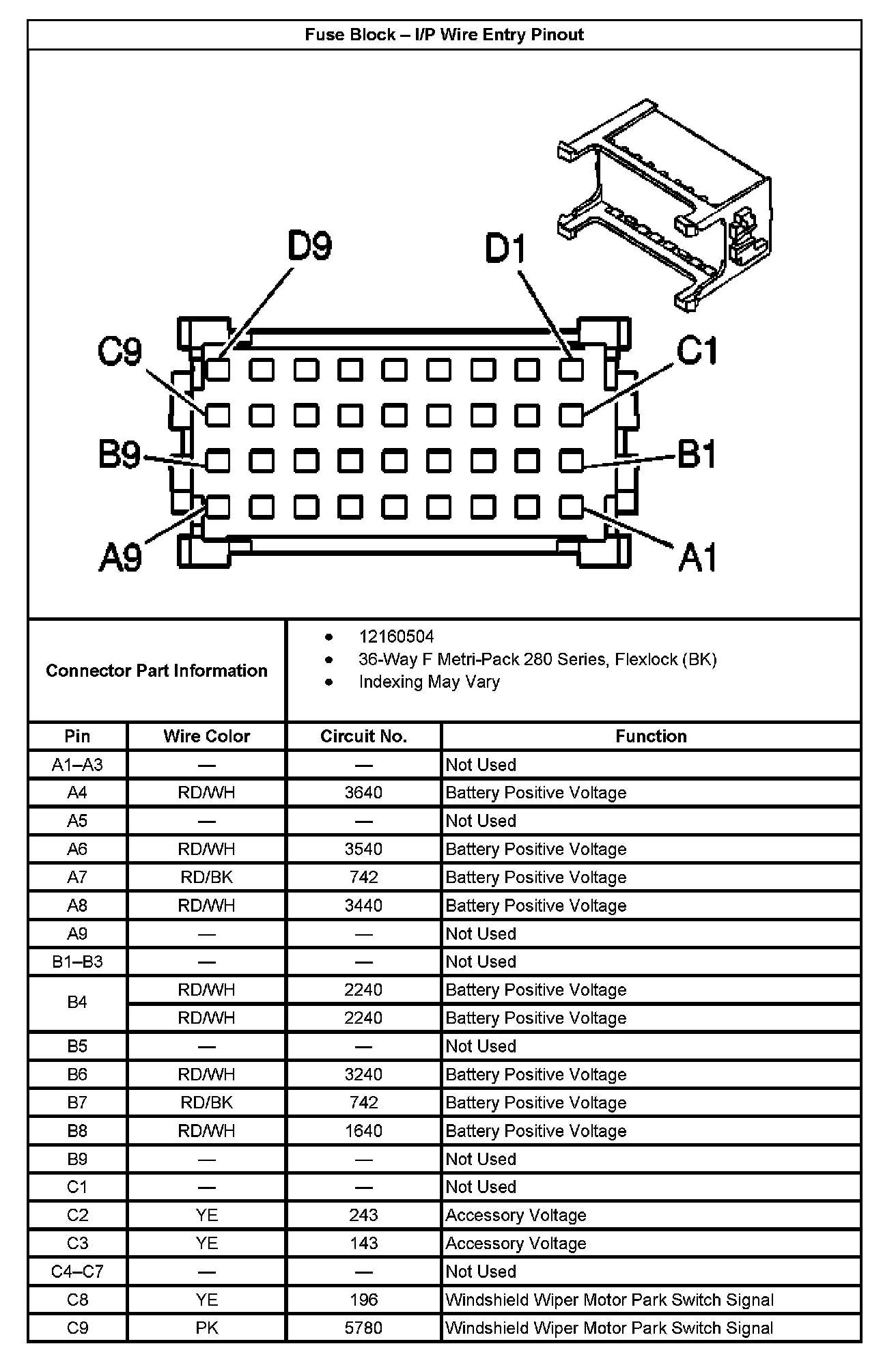 Fuse Block - I/P Wire Entry Pinout Part 2: