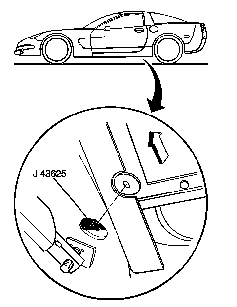 The service jack lift pad must not contact the rocker panels, or the floor pan.