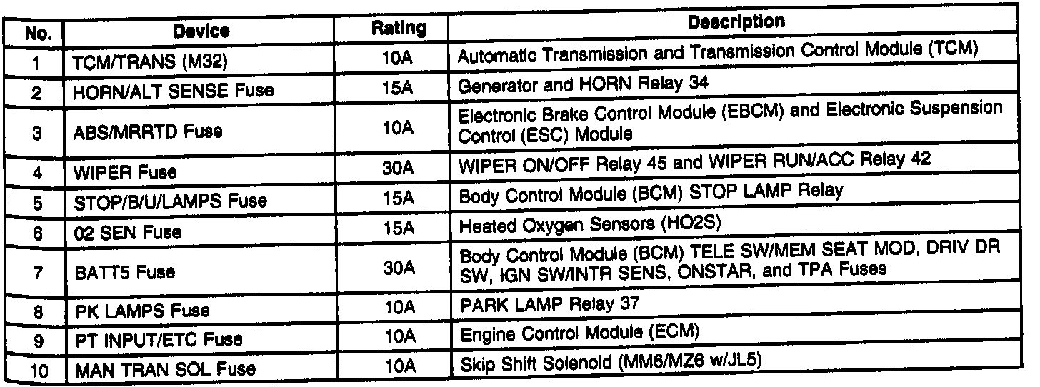 Fuse Block - Underhood Label Usage: