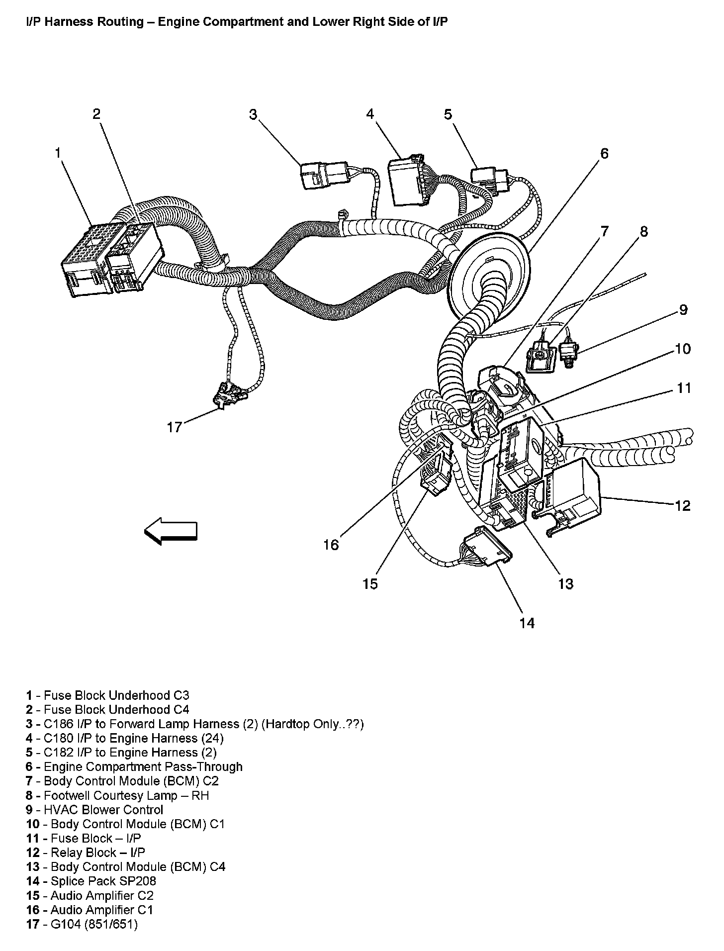 P Harness Routing - Engine Compartment And Lower Right Side Of I/P: