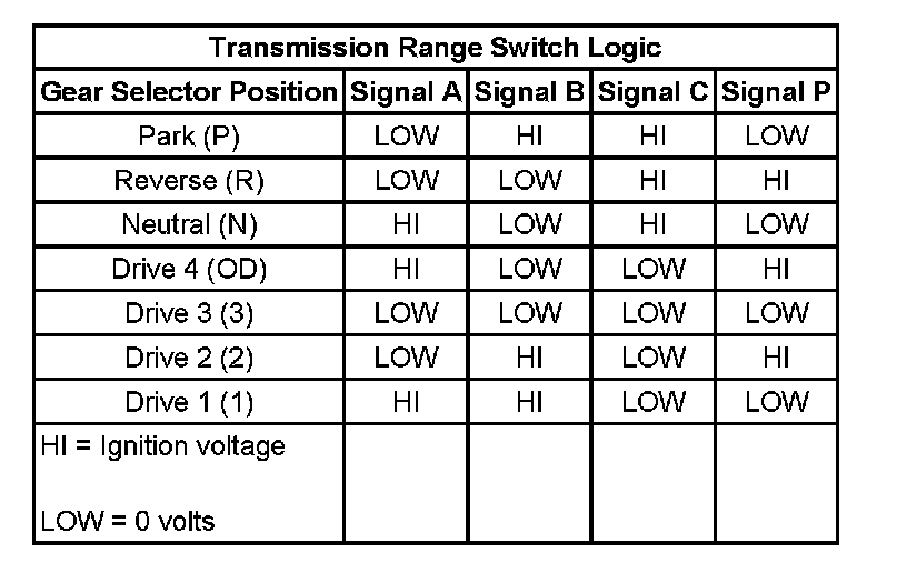 Transmission Range Switch Logic: