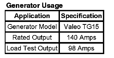 Charging System: Specifications