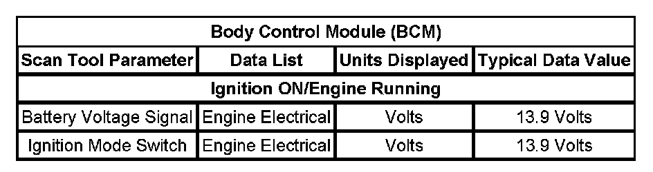 Normal Scan Tool Data Values - Body Control Module (BCM)