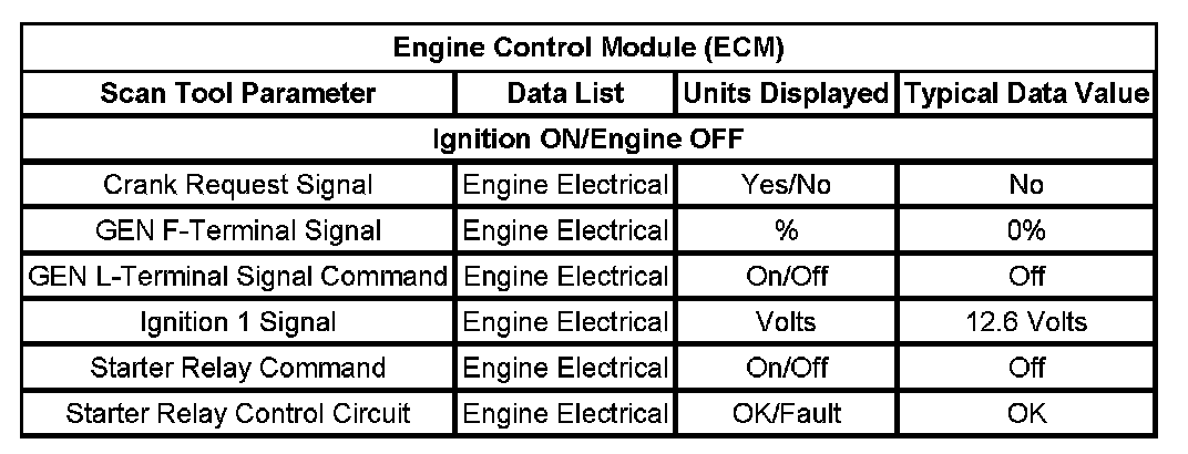 Normal Scan Tool Data Values - Engine Control Module (ECM)