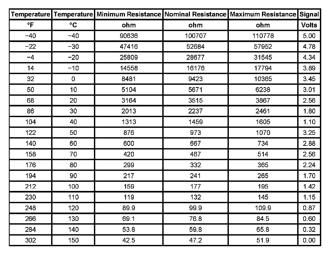 Transmission Fluid Temperature (TFT) Sensor Specifications: