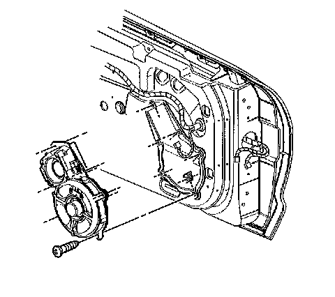 7. Install the uppermost screw mounting the radio speaker assembly to the door.