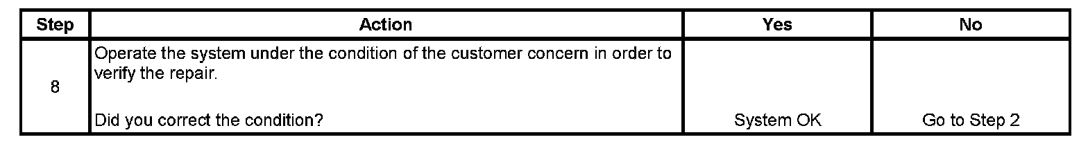 The numbers below refer to the step numbers on the diagnostic table.