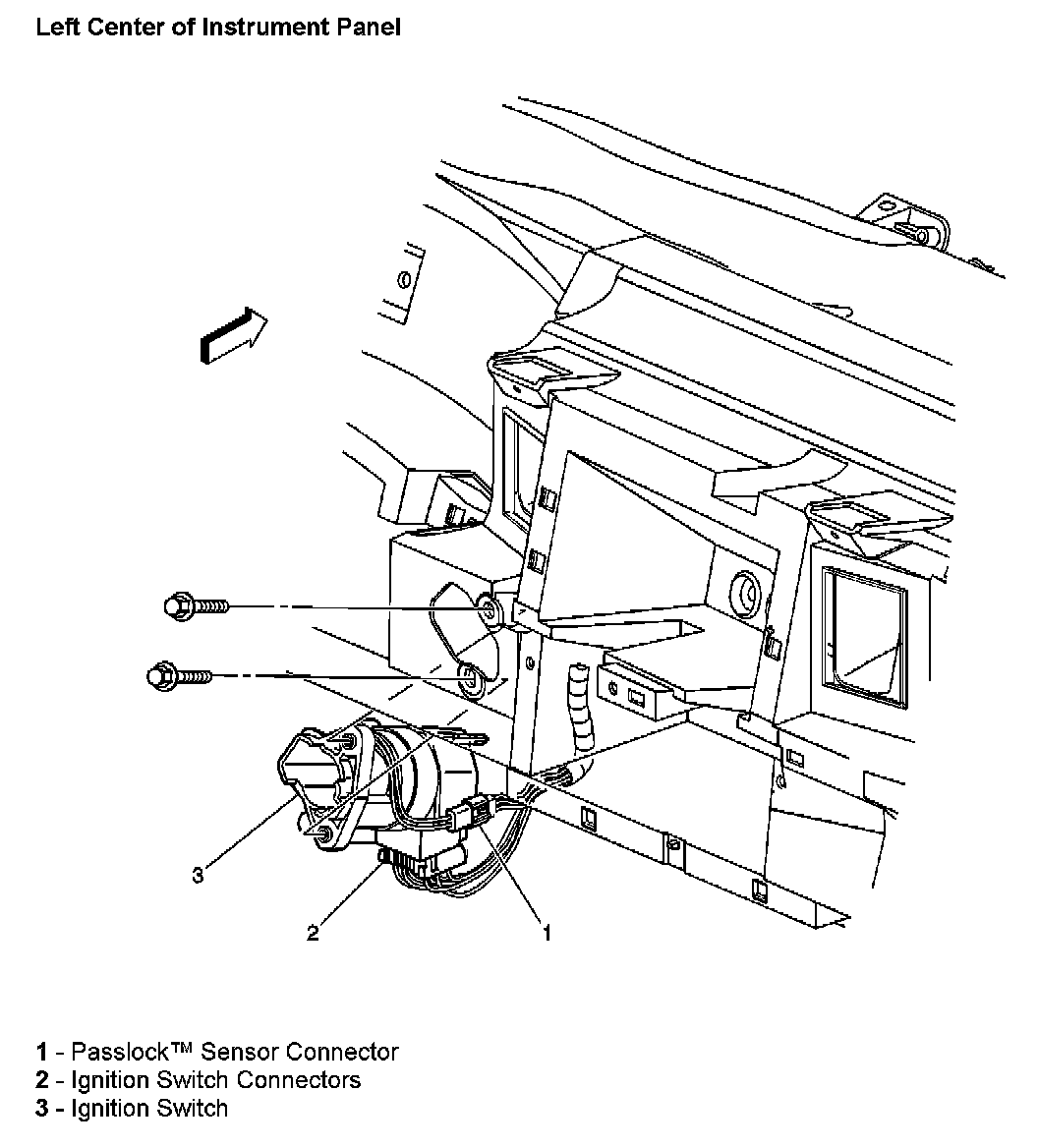 The Passlock Sensor is located in the left center of the instrument panel as part of the ignition switch assembly.