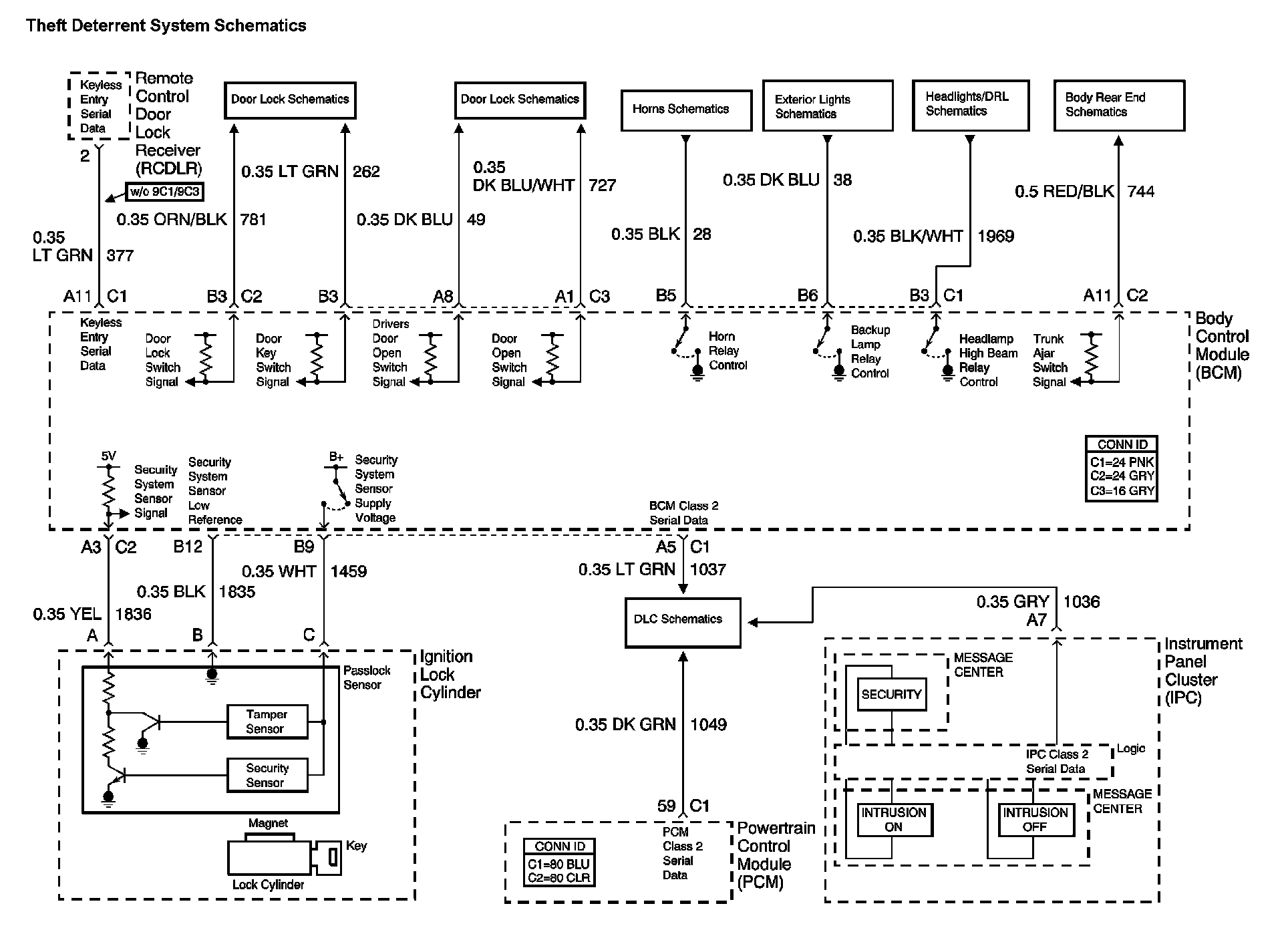 The locations for the Connectors, Grounds, Splices, and grommets shown within these diagrams can be found via their numbers at vehicle locations.
