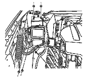 16. Remove the underhood fuse block(s) battery cable and buss bar terminals from the fuse block by pulling down.