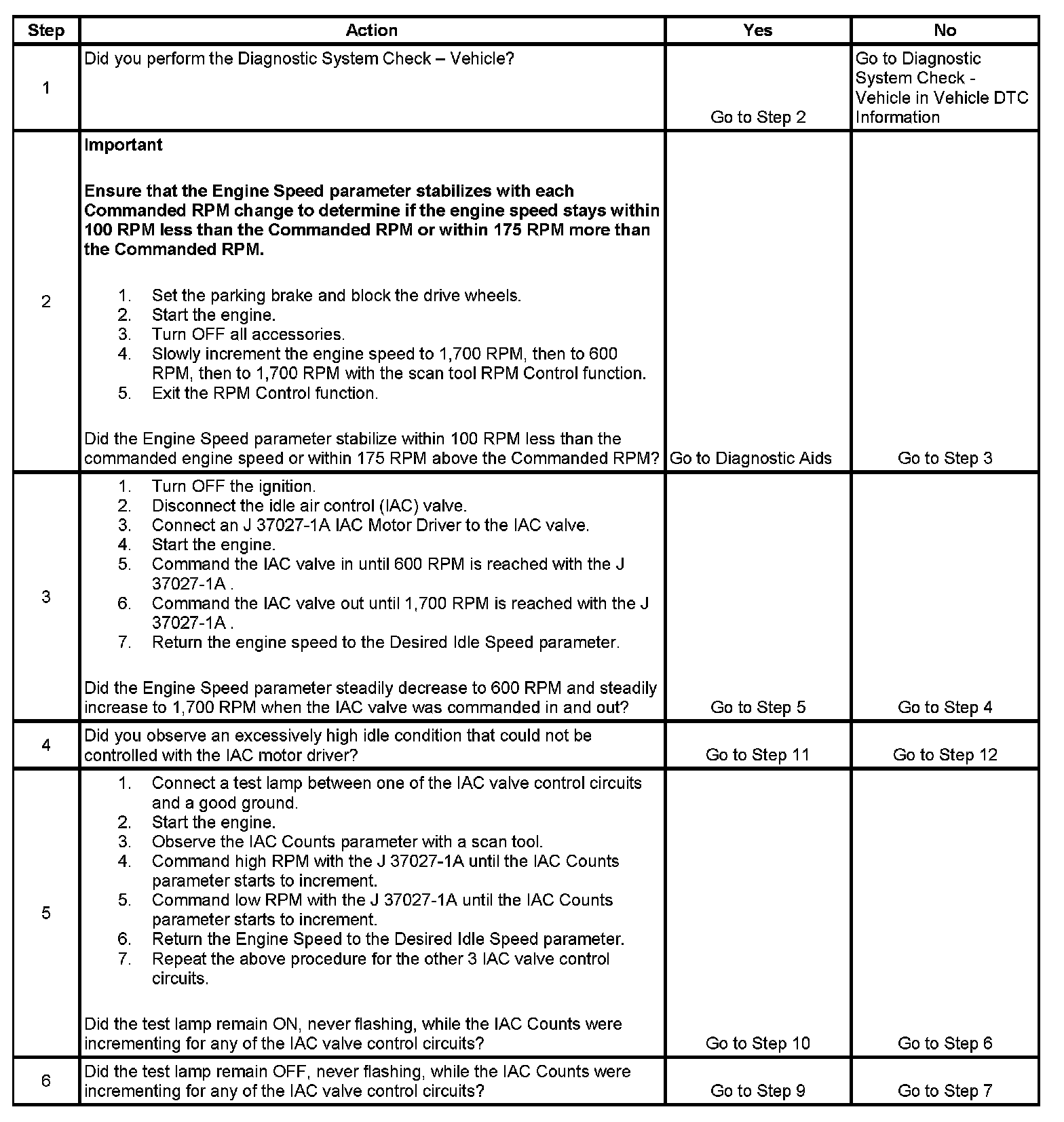 IDLE AIR CONTROL (IAC) SYSTEM DIAGNOSIS