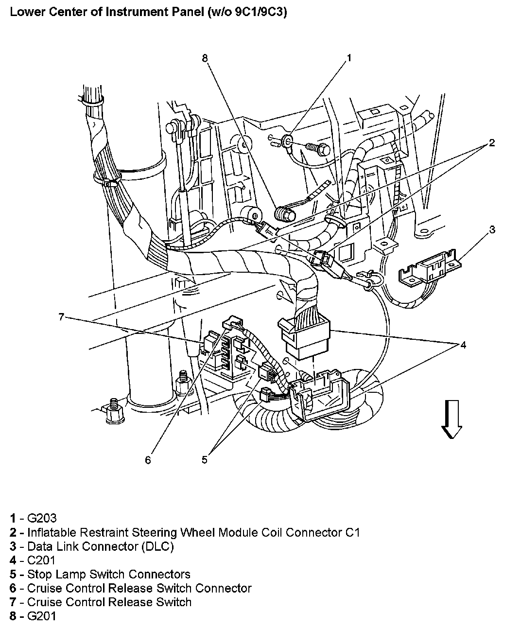 Lower Center Of Instrument Panel (Without RPO Code 9C1/9C3):