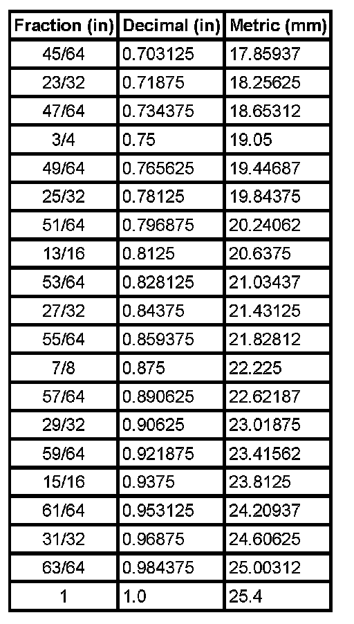 Equivalents - Decimal And Metric