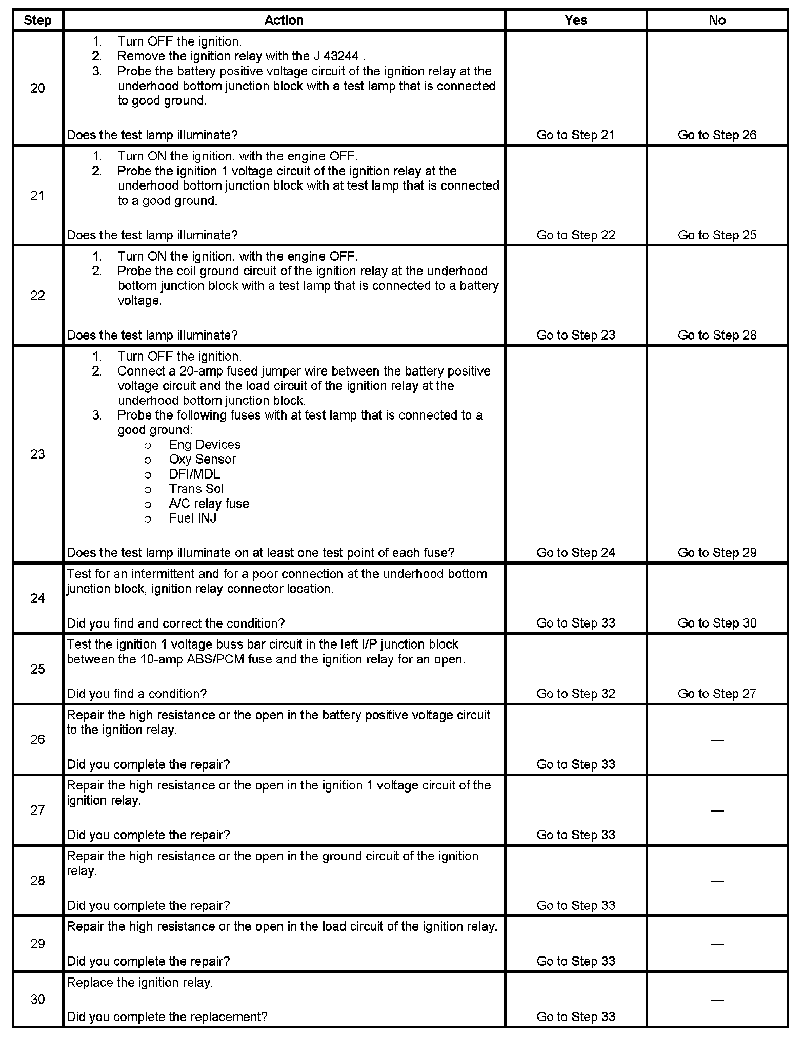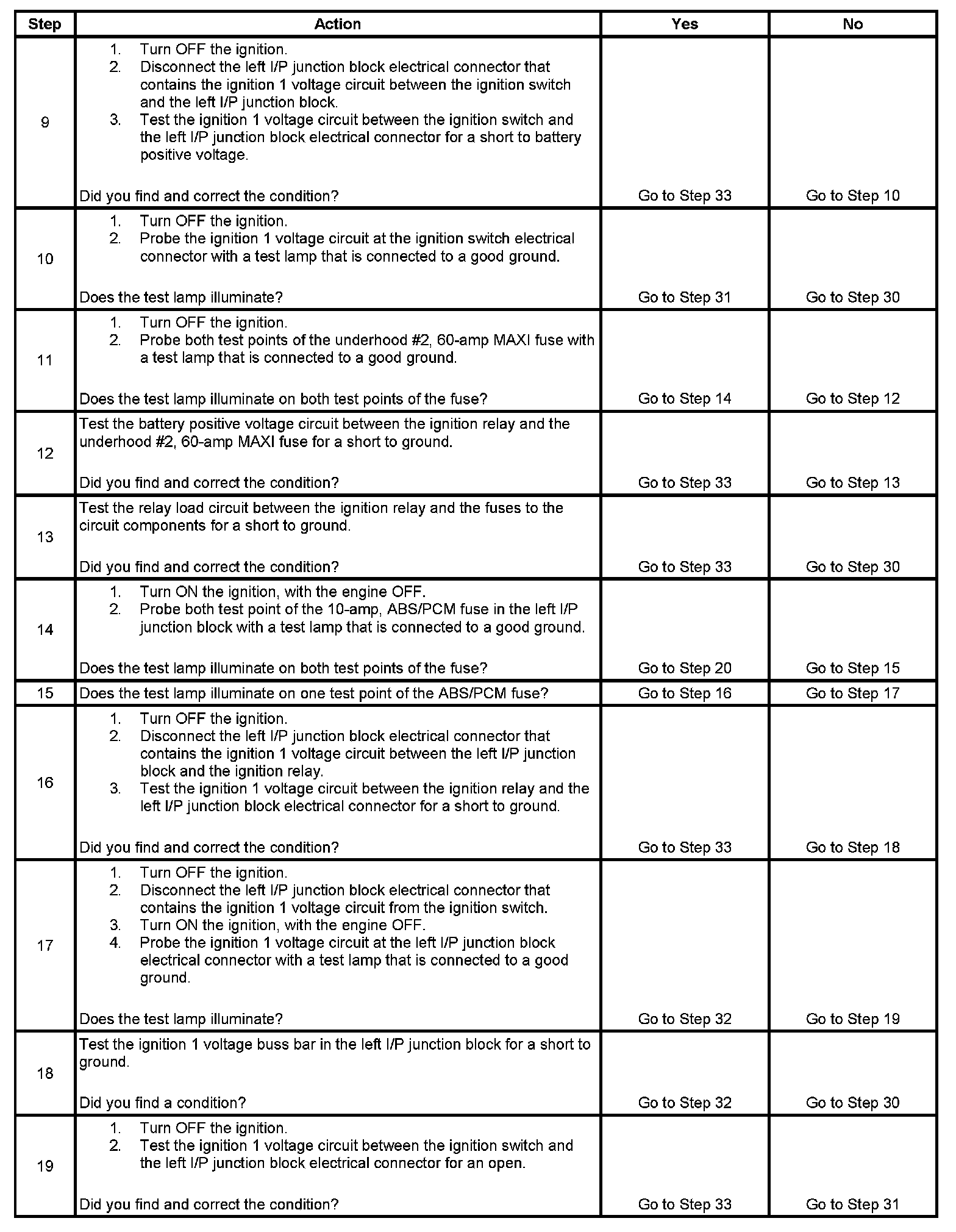 The ignition relay table assumes that the vehicle battery is fully charged. Refer to Battery Inspection/Test in Starting and Charging. Battery Inspection/Test