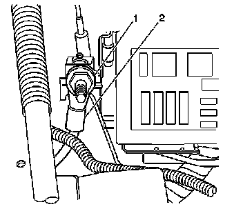 8. Install the positive battery cable (2) to the underhood accessory wiring junction block.