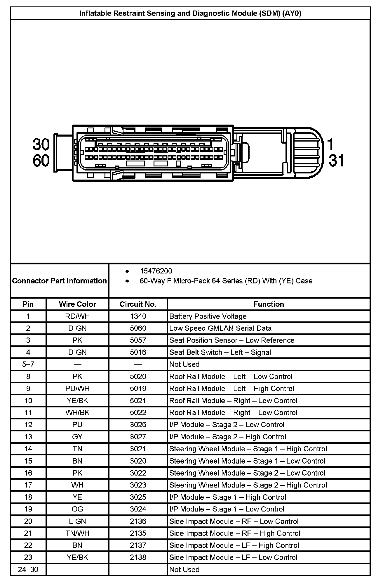 Inflatable Restraint Sensing And Diagnostic Module (SDM) (With RPO Code AY0) Part 1: