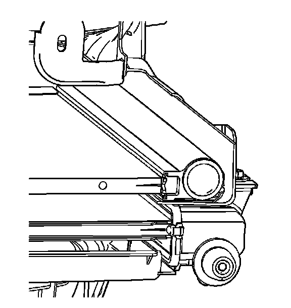 NOTE: The bolt retaining the condenser to the radiator end tank is a special length and should be the ONLY bolt used upon reinstallation. The use of a longer bolt will damage the radiator end tank.