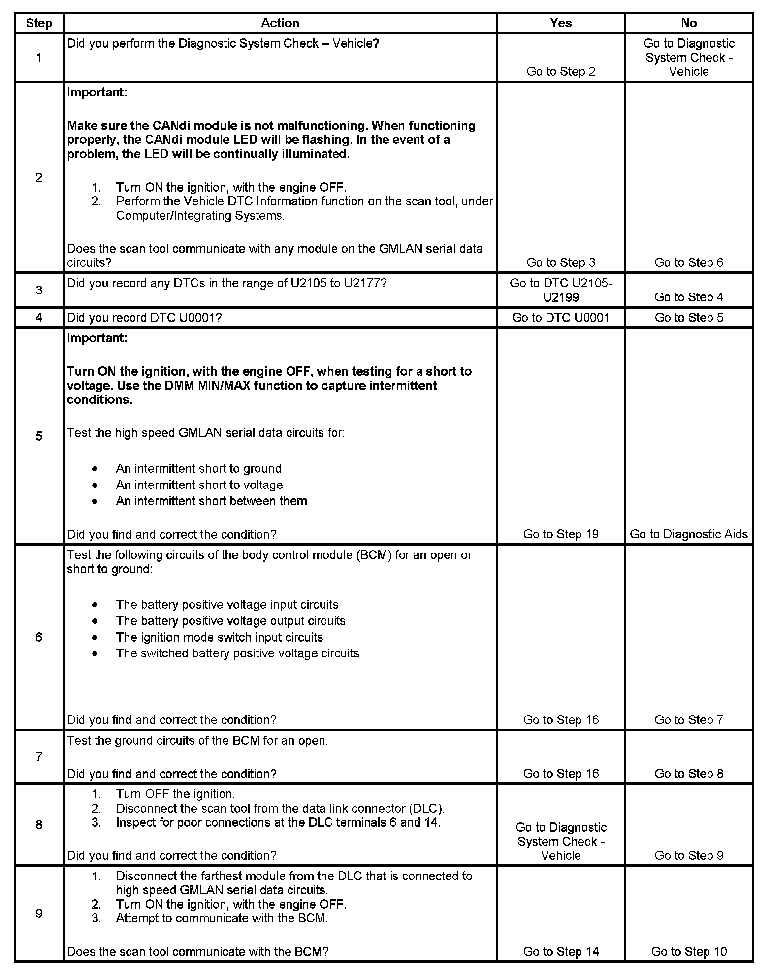2. A partial malfunction in the high speed GMLAN serial data circuits uses a different procedure from a total malfunction of the high speed GMLAN data circuits. Refer to Data Link References to identify which modules communicate on the high speed GMLAN serial data circuits.