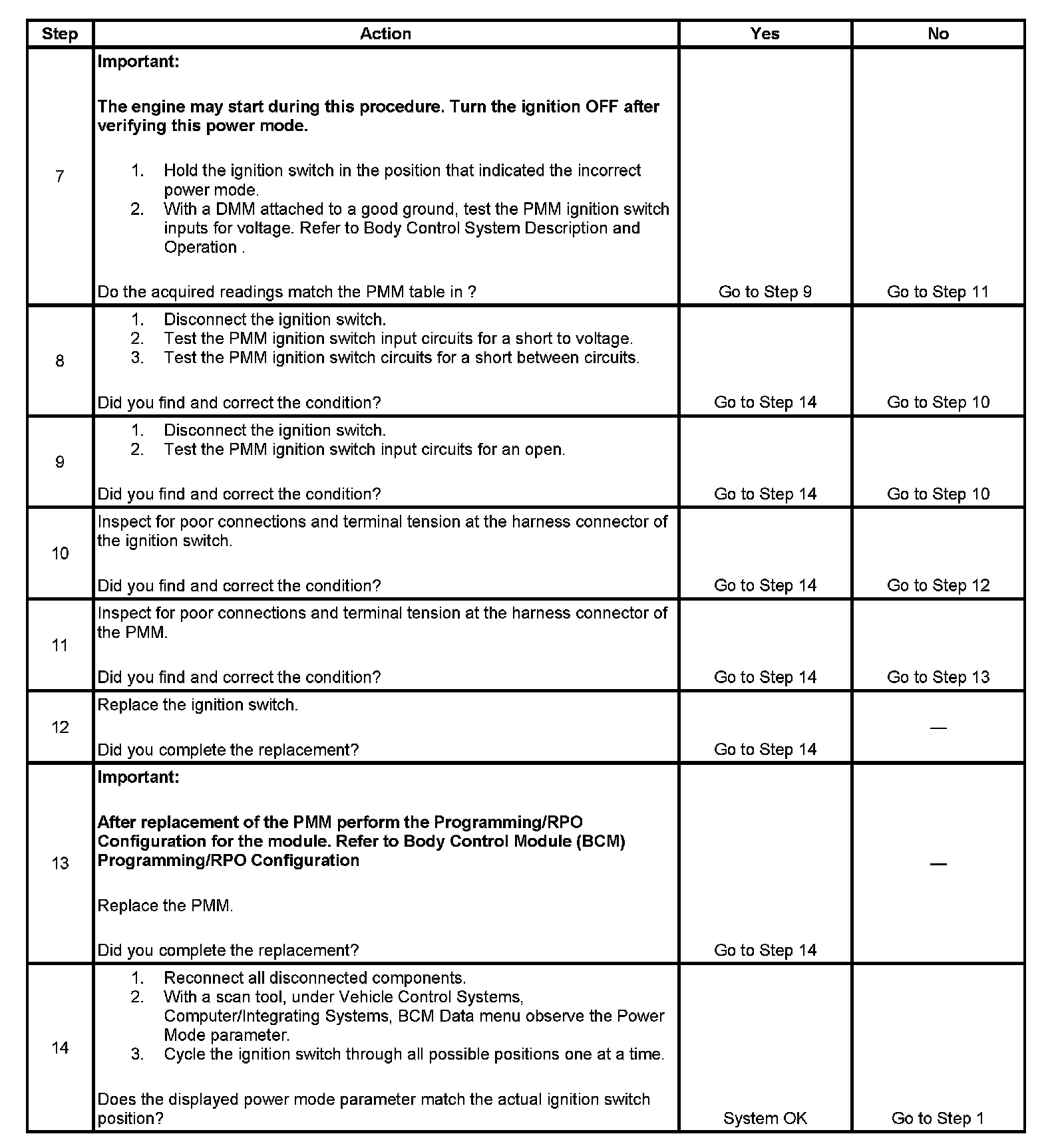 8. If any ignition switch parameters that should be inactive in the present ignition switch position are active, 2 ignition switch signal circuits may be shorted together.