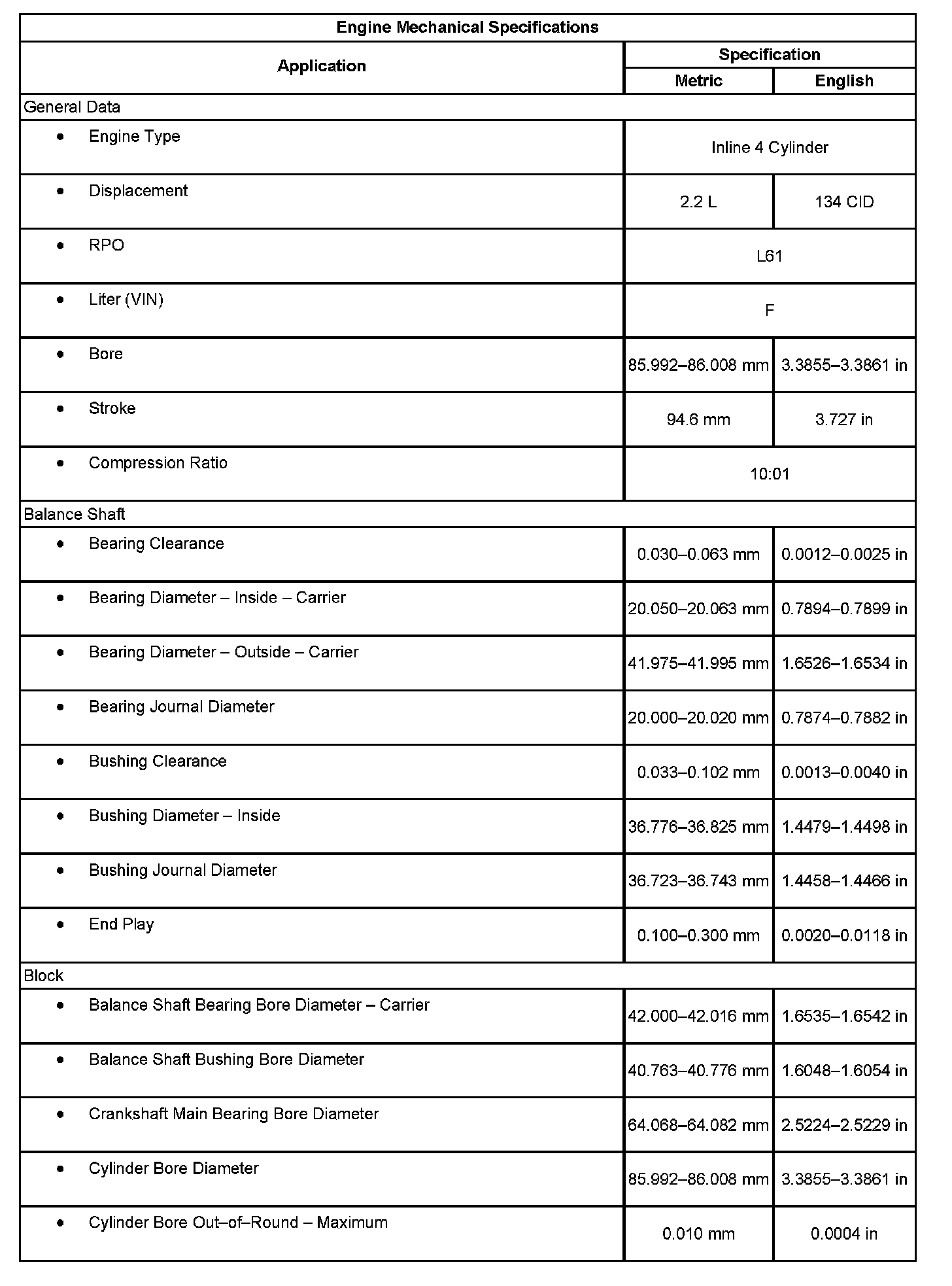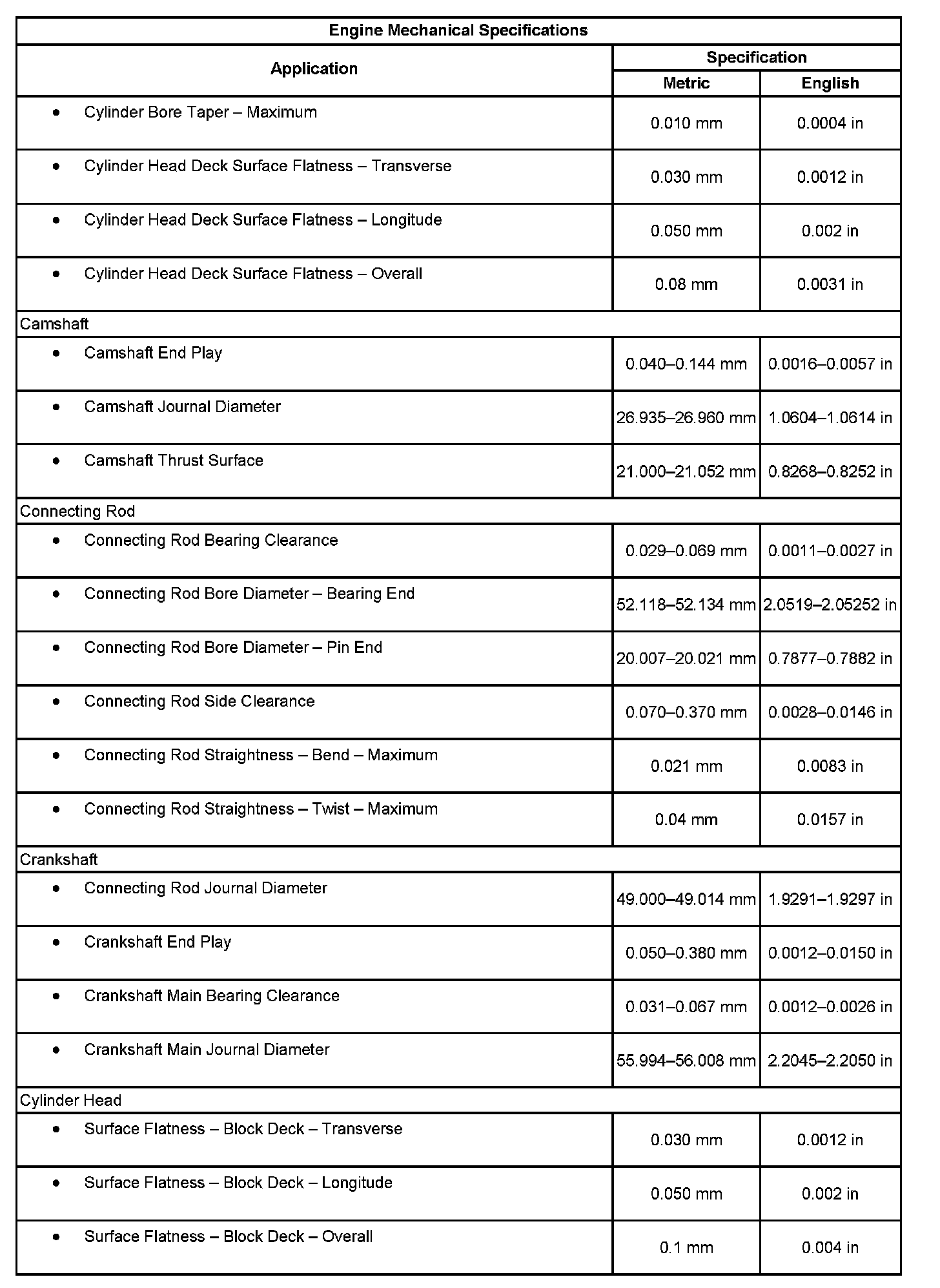 Engine Mechanical Specifications
