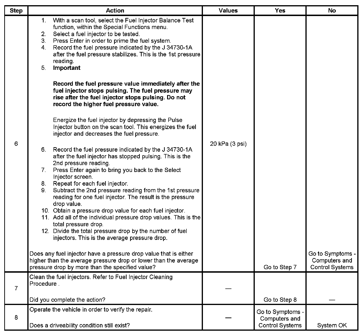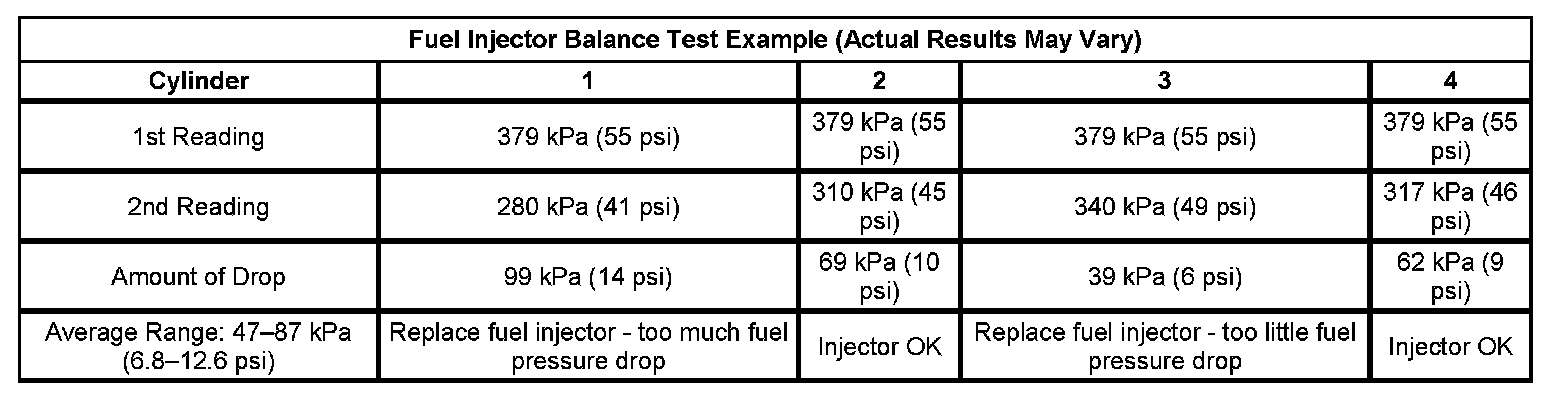 Fuel Injector Balance Test Example (Actual Results May Vary):