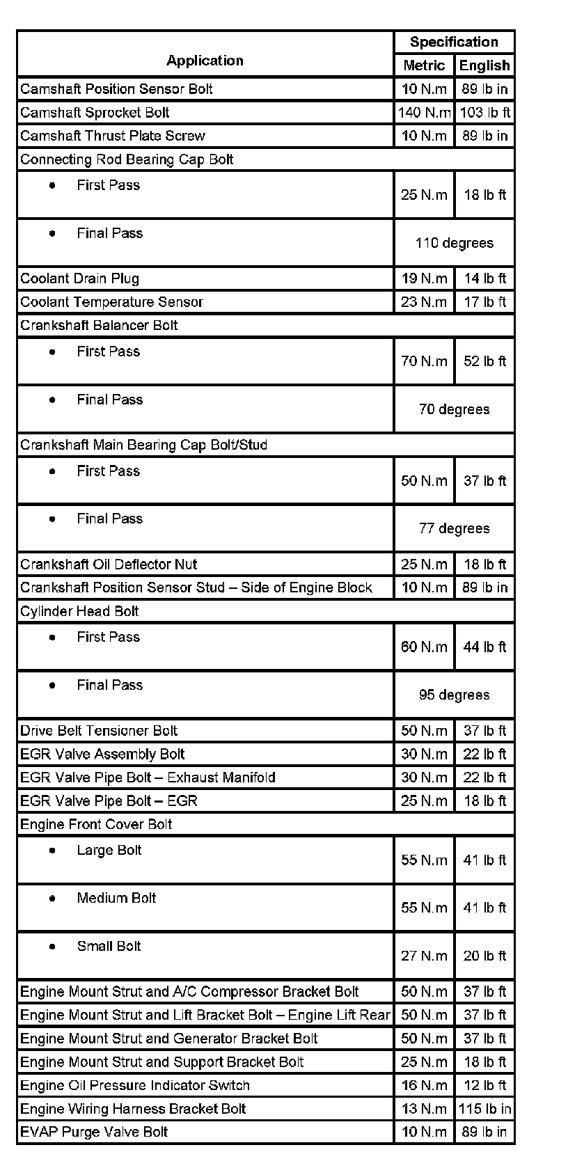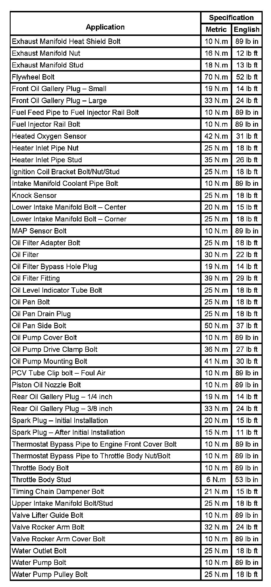 Fastener Tightening Specifications