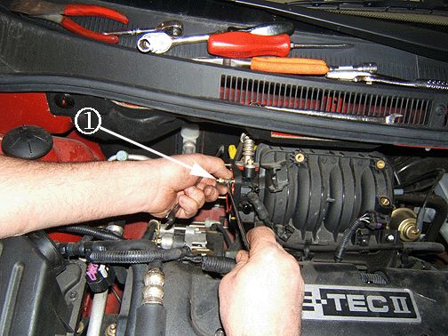 1. Disconnect the PCV valve heater hose from the PCV Valve (2).