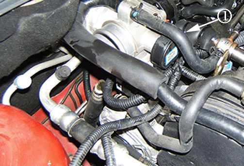 2. Disconnect the PCV valve heater hose from the intake manifold (3).