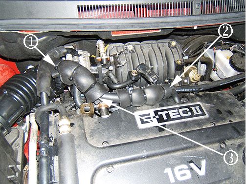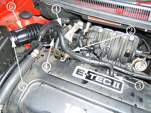 2. PCV valve coolant outlet hose to the surge tank (2).