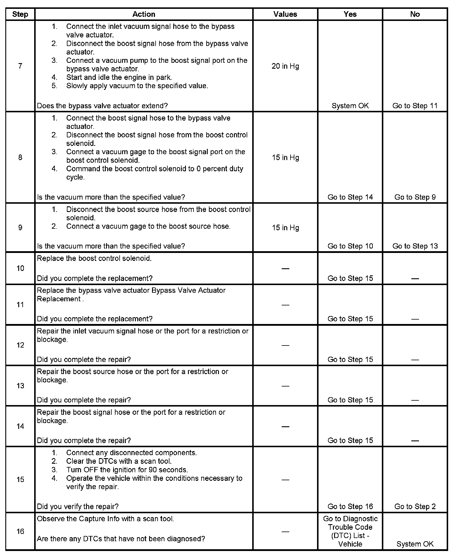 The PCM controls boost pressure by using the boost control solenoid. The boost control solenoid is a normally open valve. Under most conditions, the PCM commands the boost control solenoid to operate at a 99-100 percent duty cycle. This keeps the solenoid valve closed and allows only inlet vacuum from the supercharger plenum to the bypass valve actuator to control the position of the bypass valve. At idle, engine vacuum is applied to the upper side of the bypass valve actuator, counteracting spring tension to hold the bypass valve open. When the engine load is increased, the engine vacuum is decreased, causing the spring in the bypass valve to overcome the diminishing applied vacuum, closing the bypass valve and allowing the boost pressure to increase. When reduced boost pressure is desired, the PCM commands the boost control solenoid to operate at a 0-98 percent duty cycle. This opens the solenoid valve and allows boost pressure to enter the bypass valve actuator at the lower side to counteract the spring tension, opening the bypass valve, and recirculating excess boost pressure back into the supercharger inlet.