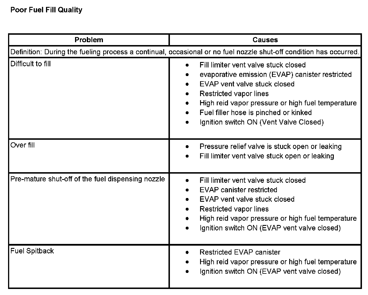 Poor Fuel Fill Quality: