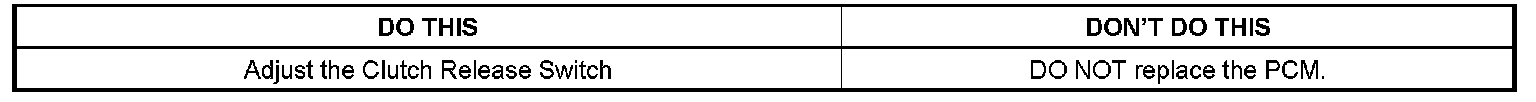 1. Adjust the Clutch Release Switch. Refer to Clutch Release Switch Replacement in SI.