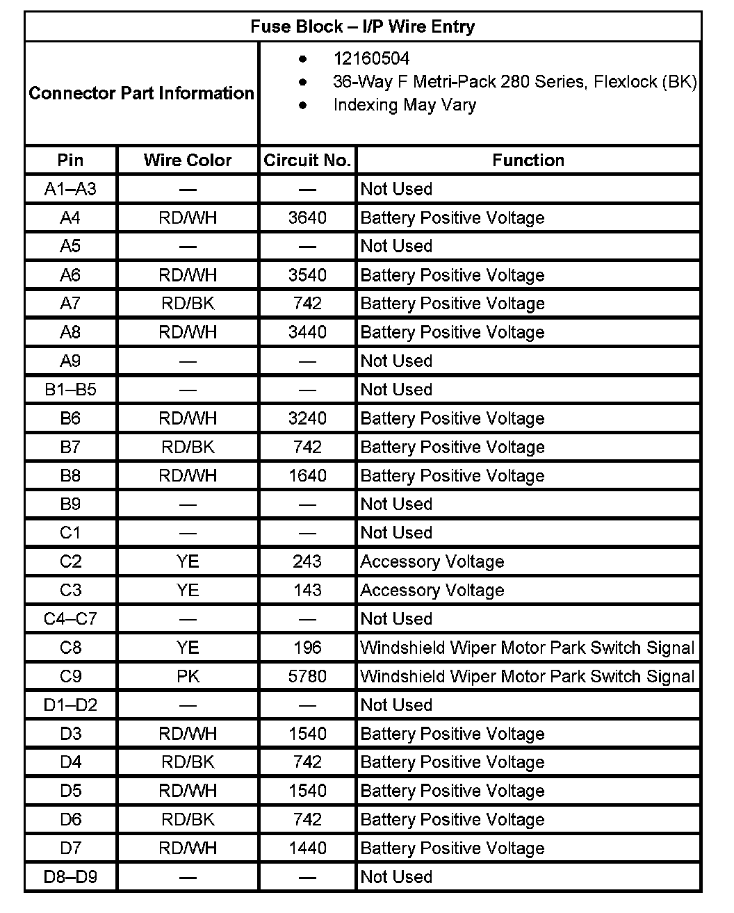 Fuse Block - I/P Wire Entry: