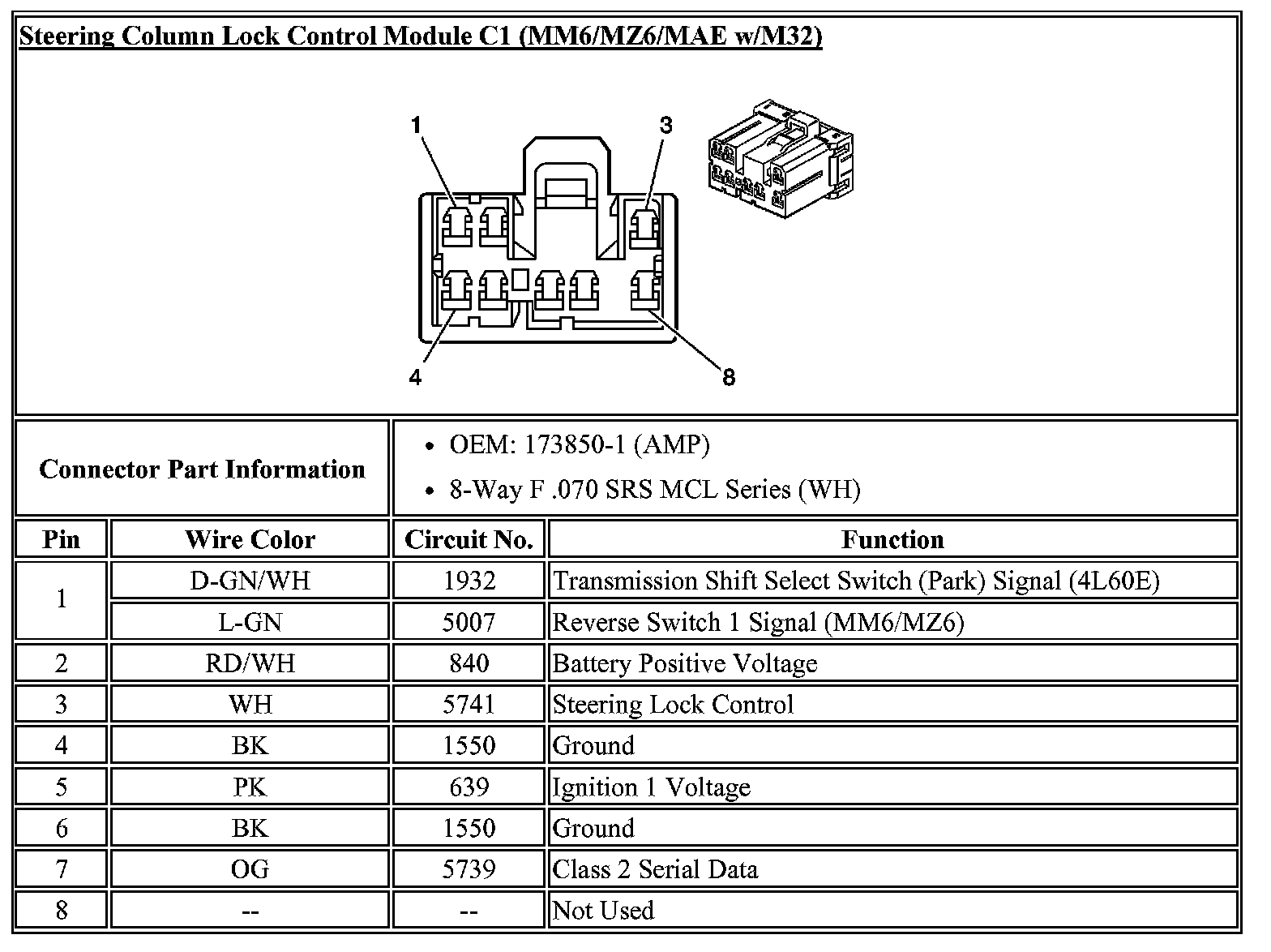 Steering Column Lock Control Module C1: