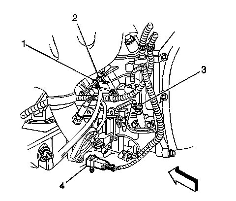 3. Remove the ground strap bolt, strap (1) and engine harness ground.