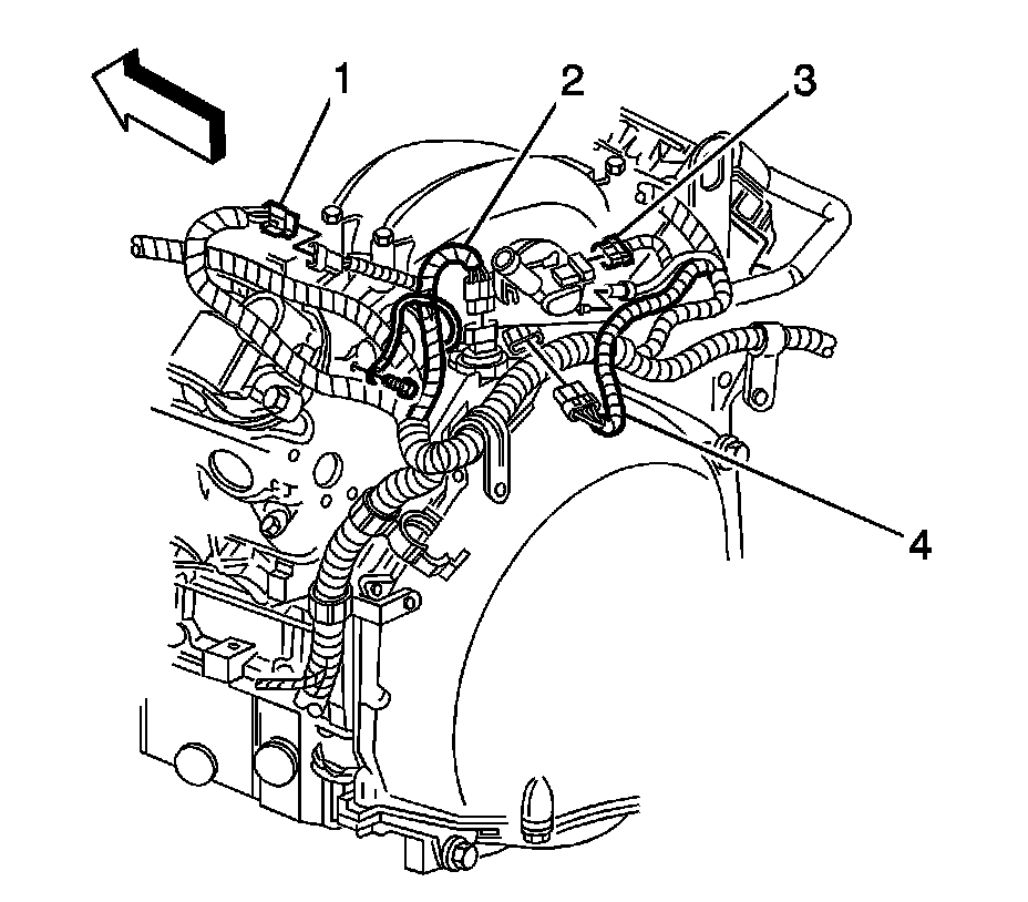 4. Disconnect the electrical connector for the oil pressure sensor/switch (2).