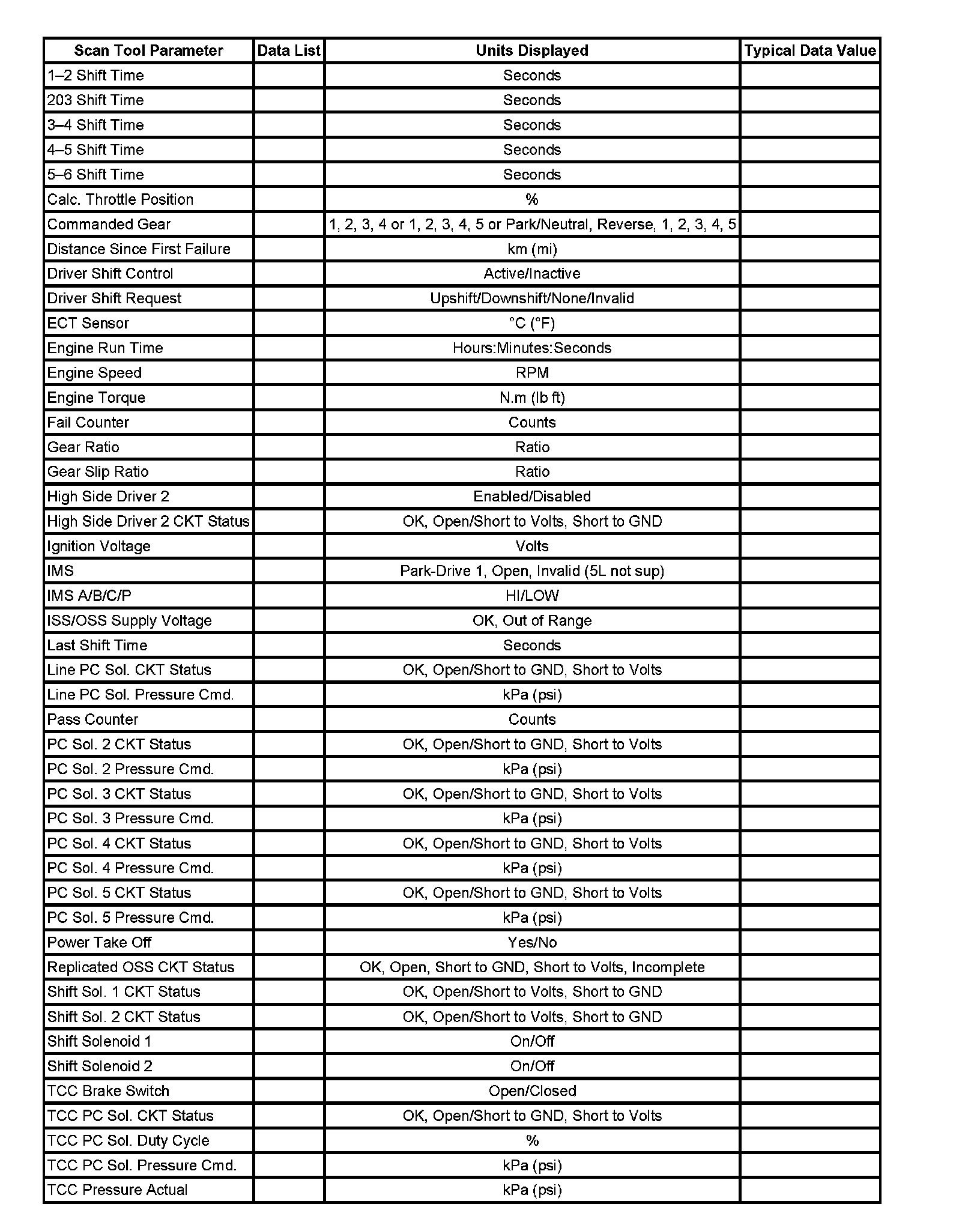 Scan Tool Data List