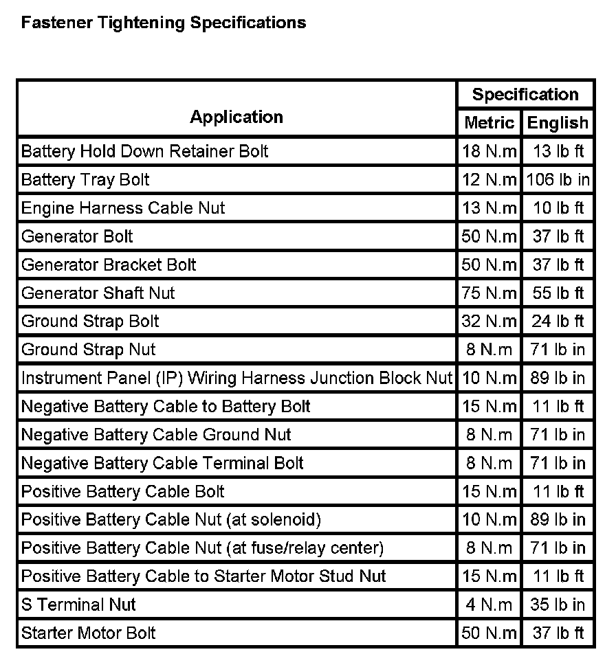Starting and Charging: Specifications