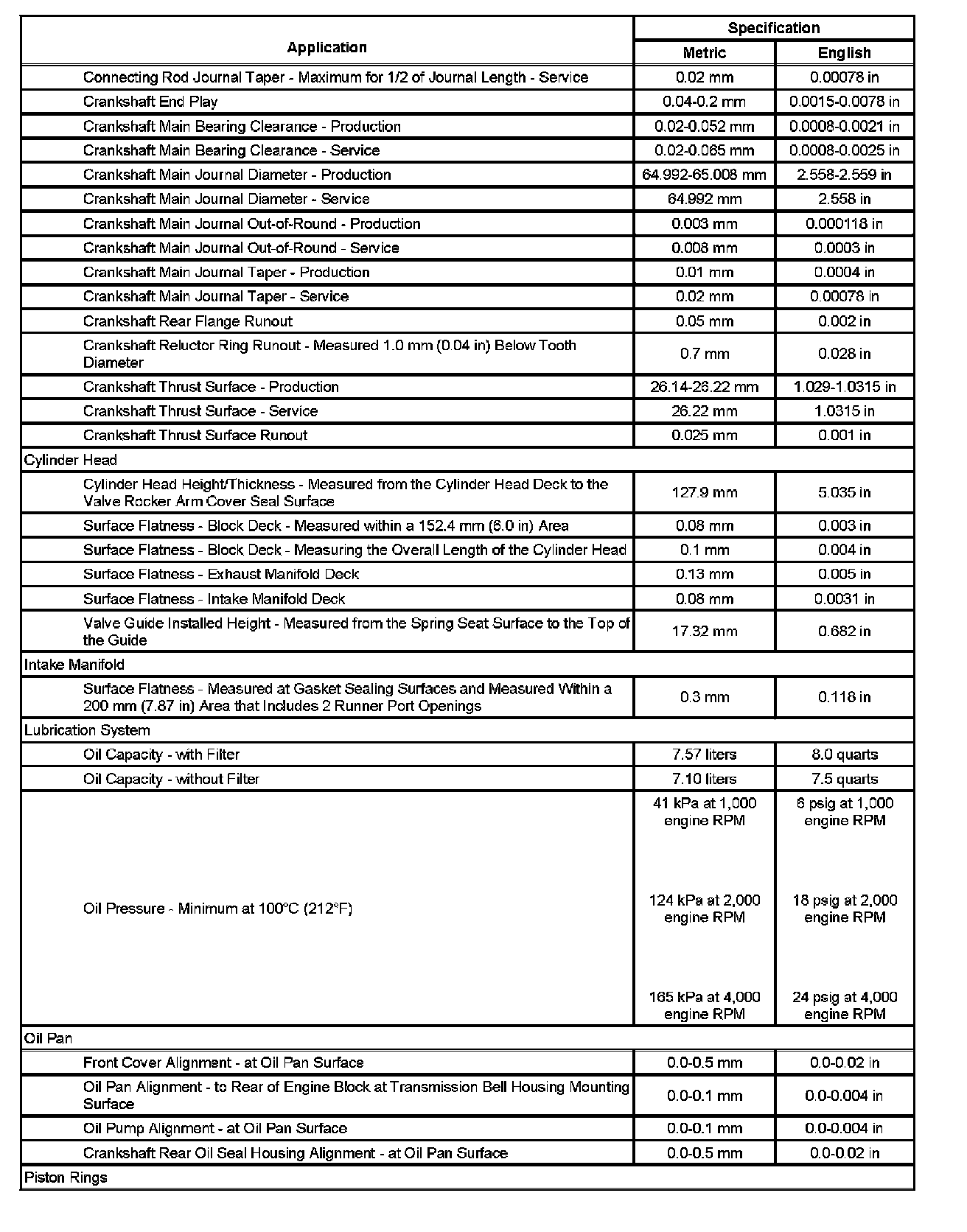Engine Mechanical Specifications (Part 2):