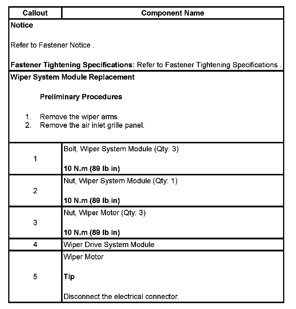 , WIPER SYSTEM MODULE REPLACEMENT