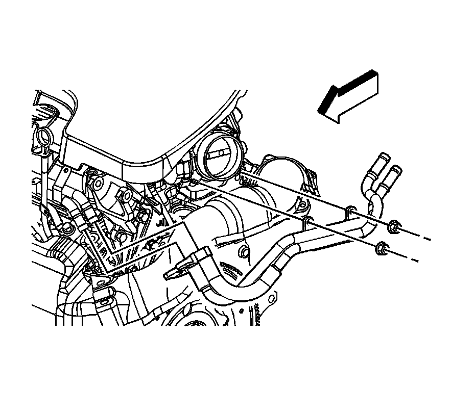 8. Remove the heater inlet and outlet hose/pipe clamp nuts from the throttle body studs.