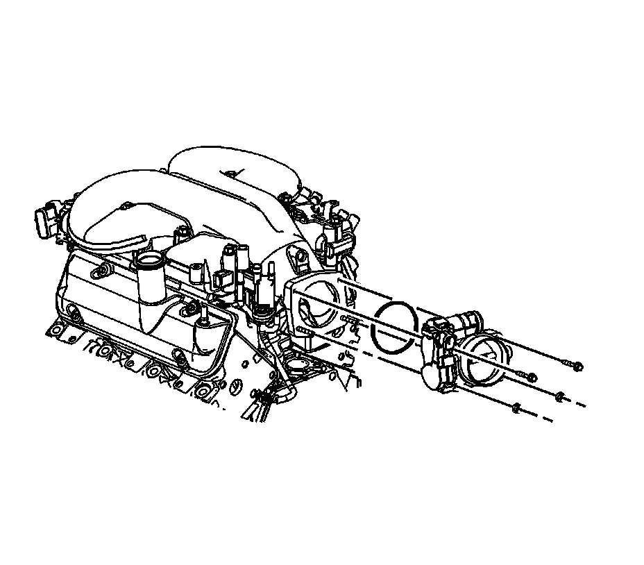 15. Apply threadlock GM P/N 12345382 (Canadian P/N 10953489) or equivalent, to the throttle body bolts/studs threads.